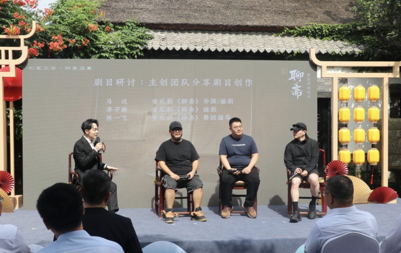 音樂劇《聊齋》以“思想精深、藝術(shù)精湛、制作精良”為創(chuàng)作標(biāo)準(zhǔn),集結(jié)國內(nèi)頂尖創(chuàng)作資源,組成核心創(chuàng)作團隊?,F(xiàn)場,導(dǎo)演/編劇馬達、編劇李子南、舞蹈編導(dǎo)陳一飛圍繞劇目藝術(shù)特色、故事構(gòu)思、音樂創(chuàng)作、視覺效果等方面展開深入分享。據(jù)悉,該劇打破線性敘事,以蒲松齡筆名“劍臣”和“留仙”的經(jīng)歷,穿插《聊齋志異》的創(chuàng)作三條線索并行,并巧妙安插多篇《聊齋志異》短篇故事擴容情節(jié),通過敘事上的跳進跳出和人物身份轉(zhuǎn)化,完成對蒲松齡性格的側(cè)寫,傳遞《聊齋志異》創(chuàng)作背后的人文關(guān)懷。?