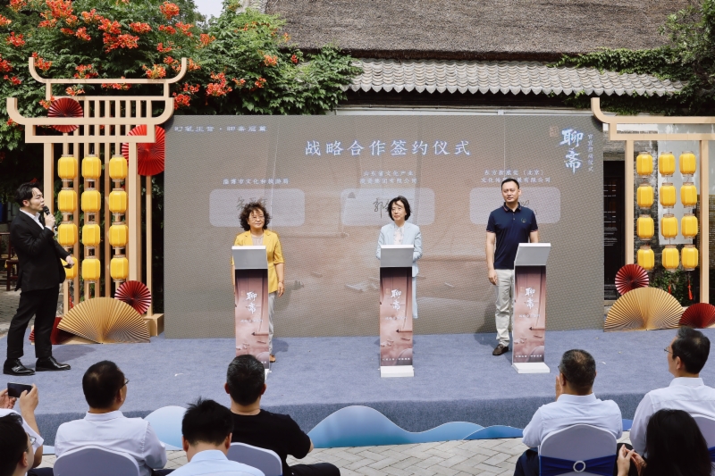 啟動儀式后,圍繞音樂劇《聊齋》后續(xù)業(yè)態(tài)開發(fā)合作事宜,總經(jīng)理郭會杰代表文投集團與淄博市文化和旅游局、東方新感覺(北京)文化傳播發(fā)展有限公司簽訂戰(zhàn)略合作框架協(xié)議。